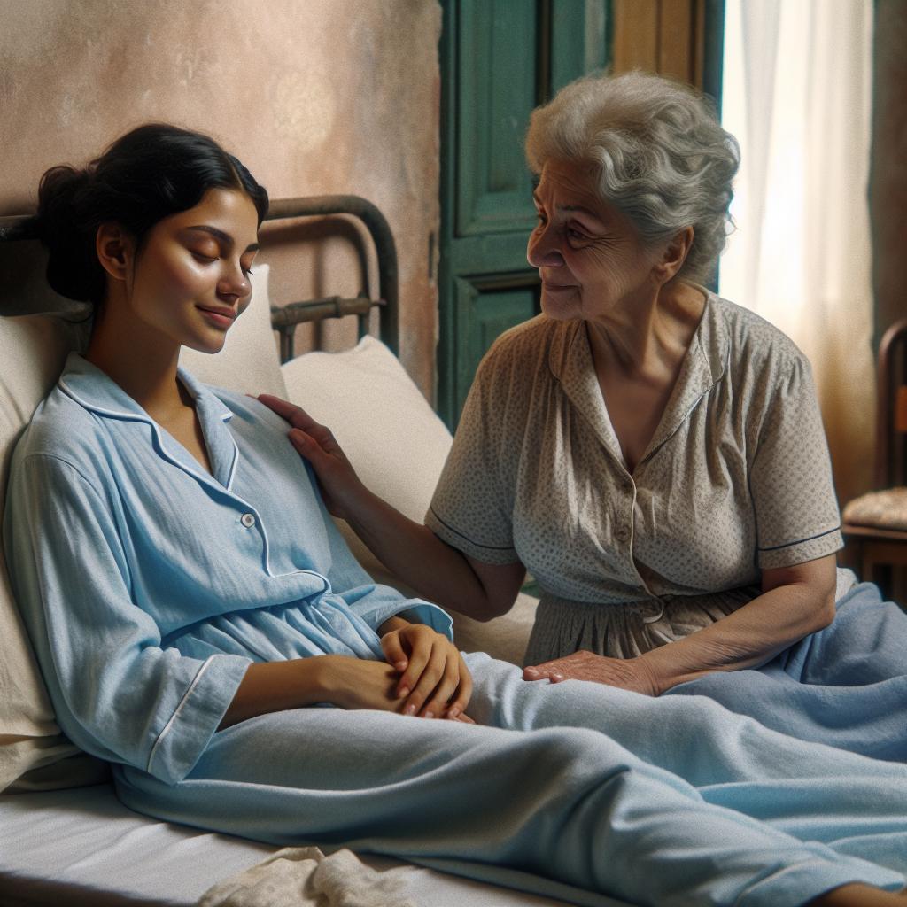 Лена, която беше все още много слаба след прекараната операция, лежеше на леглото бледа, с посинели устни и едва се усмихваше.