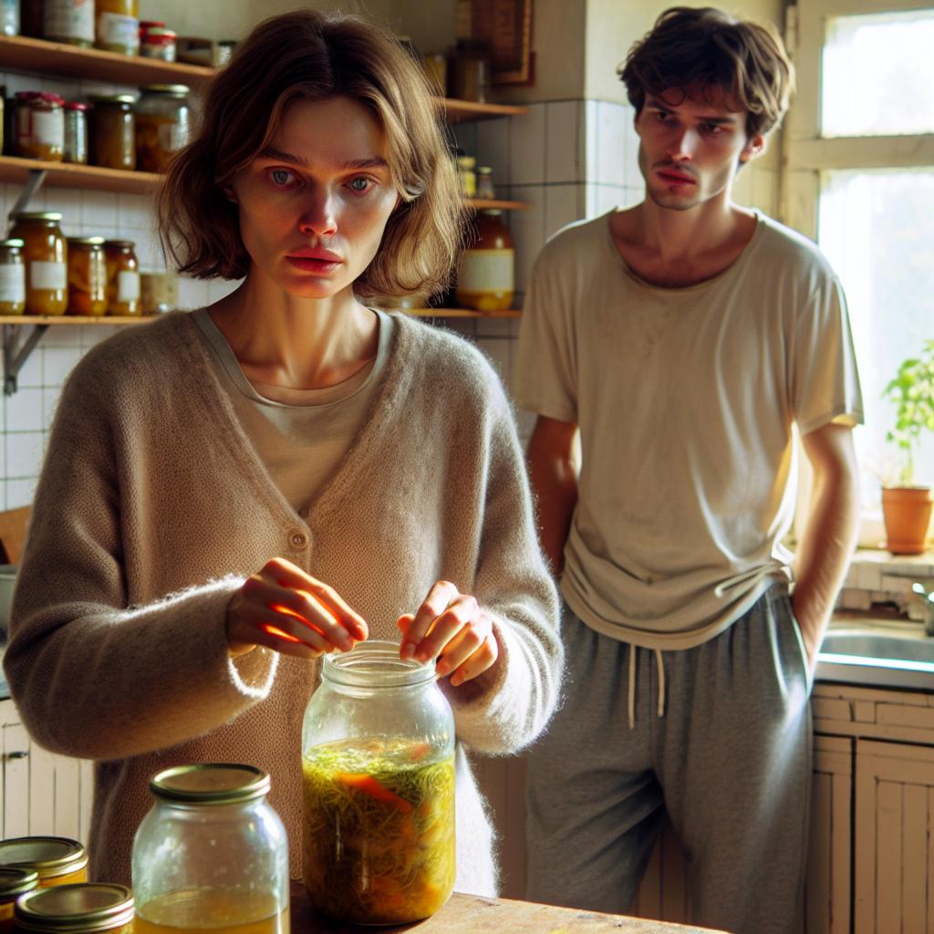 От любопитство Галя отвори един буркан със салата и веднага кухнята се напълни с отвратителна кисела миризма.