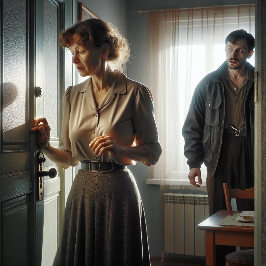 Олга надникна през шпионката. На прага на апартамента ѝ стояха двама едри мъже в тъмни якета, закопчани до врата. Израженията на лицата им бяха строги и хладни.