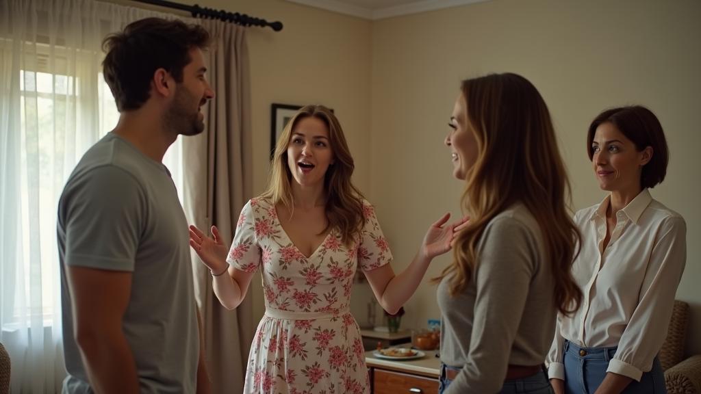 Той изчакащо погледна към майка си и сестра си. Те отново си размениха погледи.