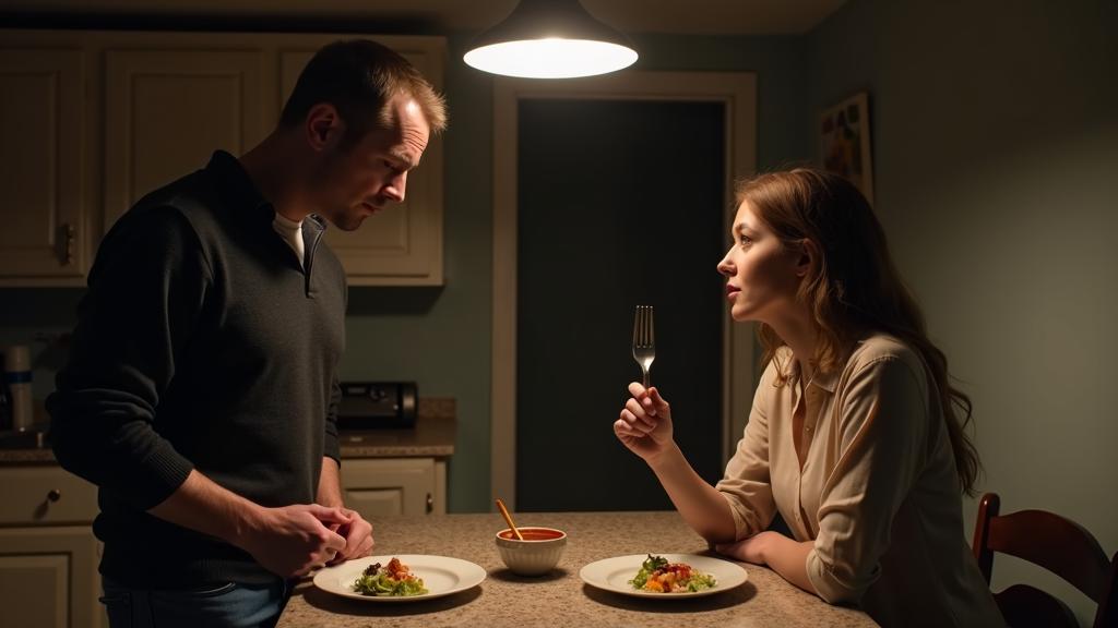 Той силно стисна вилицата, белите му пръсти подчертаваха напрежението. Беше вече късно, а на Лилия ѝ предстоеше на следващия ден да приеме голяма пратка стока. Скандалът беше последното, което ѝ искаше. Дълбоко си пое дъх и спокойно попита: