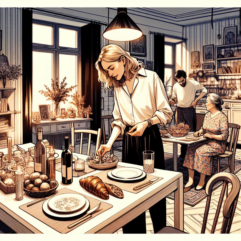 Тя въздъхна, оправяйки салфетките на масата. Артем трябваше да се върне от работа към седем, но, както винаги, се забавяше. Майка му пристигна с час по-рано — „за да помогне“, но вместо това се настани в креслото с вид на полководец пред битка.