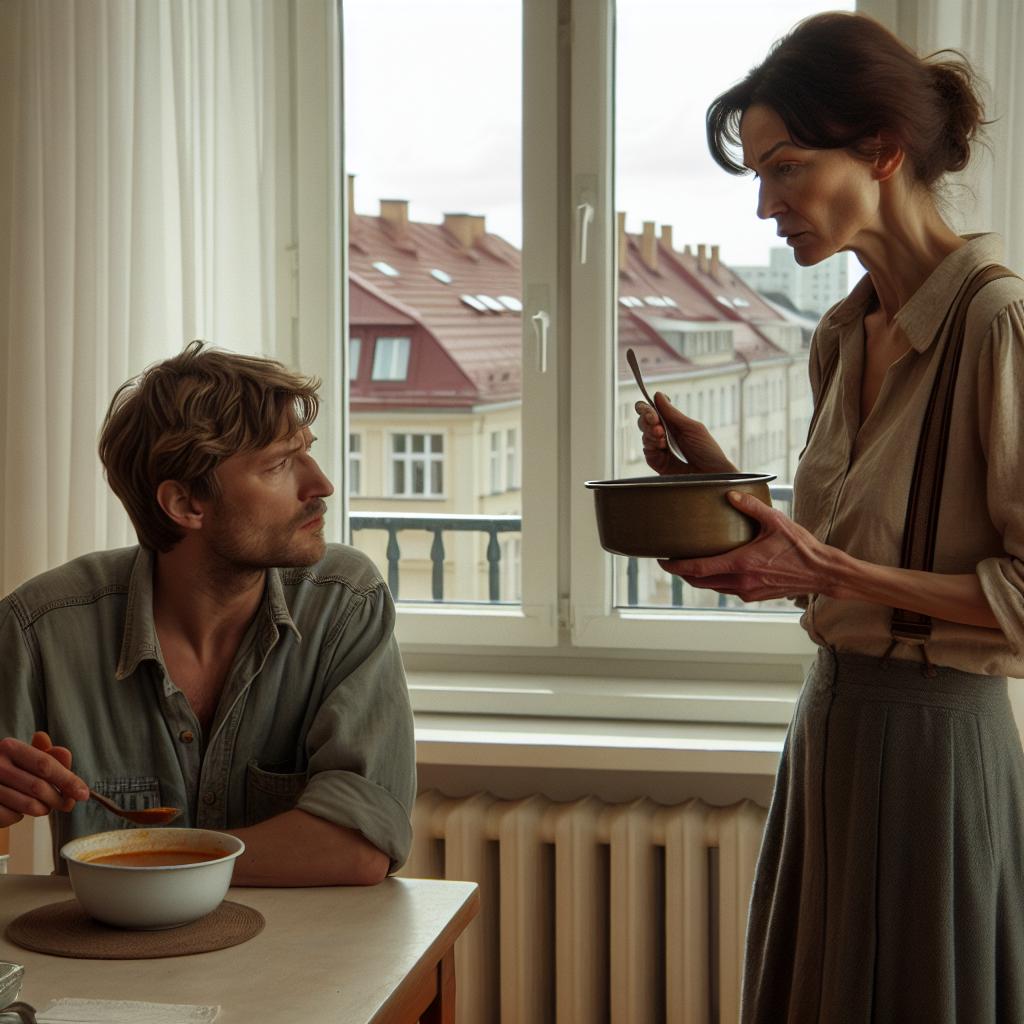 Оксана сипа суп на мъжа си, който току-що се беше прибрал от работа, и седна до него. Изчака го малко да се засити, за да започне „по-добре да мисли“, и започна сериозен, отдавна назрял разговор: