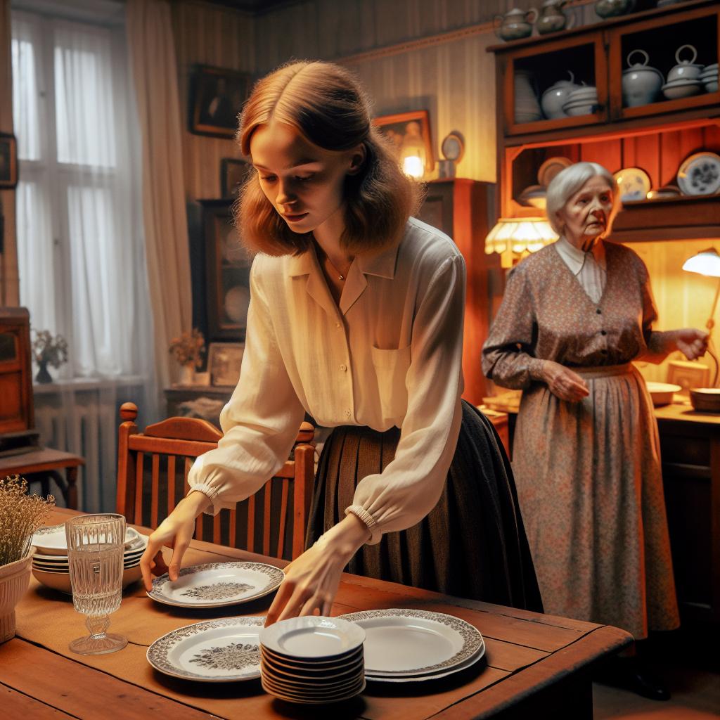 Цветелина подреждаше масата, нареждайки чинии върху тежкия плот от масивен бор, когато иззвъня звънецът. Първа се появи свекърва ѝ — Мария Георгиева, която, както обикновено, пристигна добри четирийсет минути по-рано. Щом прекрачи прага, тя веднага огледа коридора с типичния си оценяващ поглед.