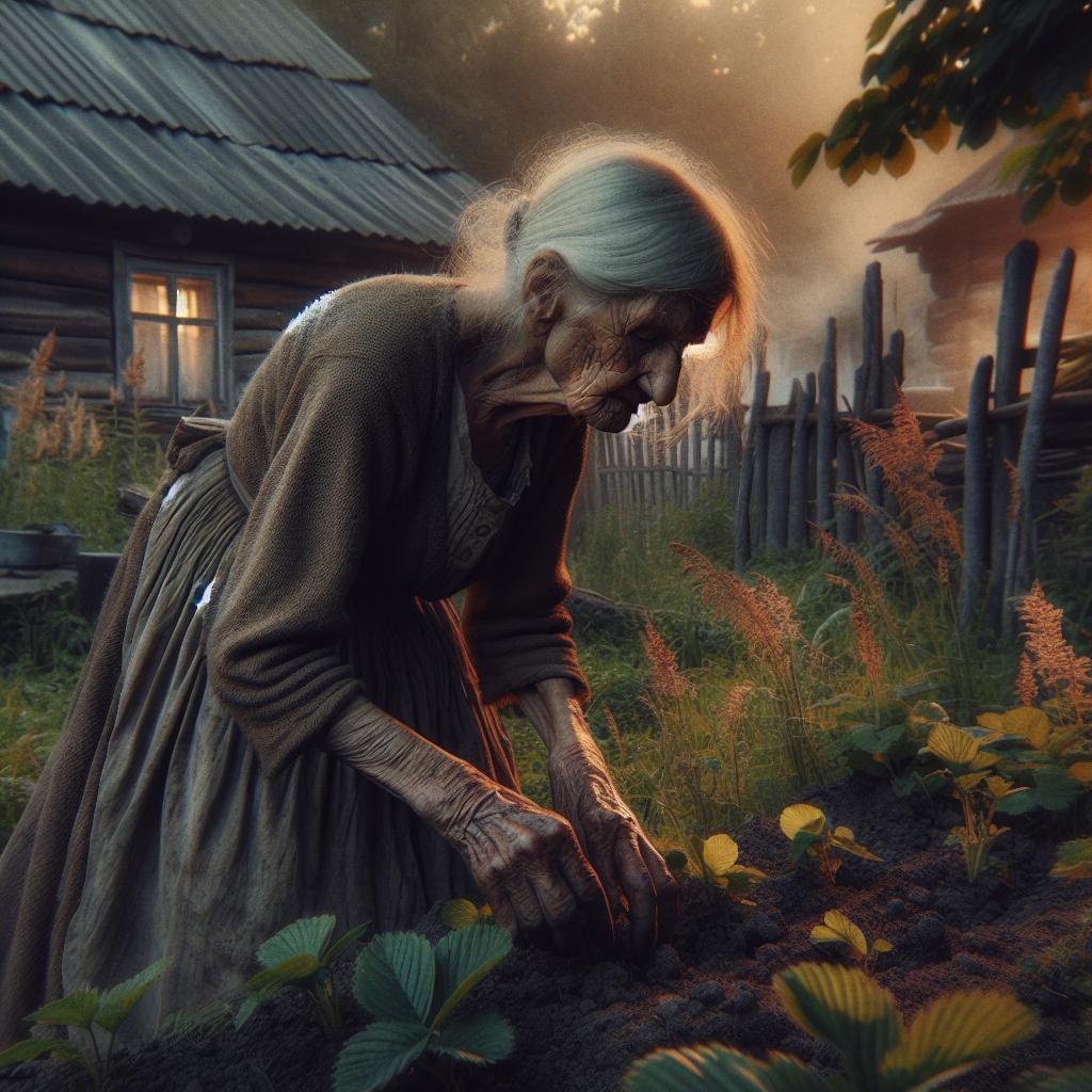 Баба прекарваше целите дни на колене в градината, опитвайки се да спаси реколтата си от сушата — единствената ѝ утеха и гордост.