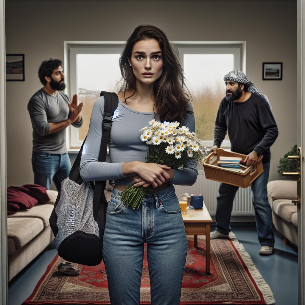 Тя стоеше на прага на жилището си, стискайки в едната ръка спортна чанта, а в другата — букет полски маргаритки, които бе купила по пътя от репетицията.