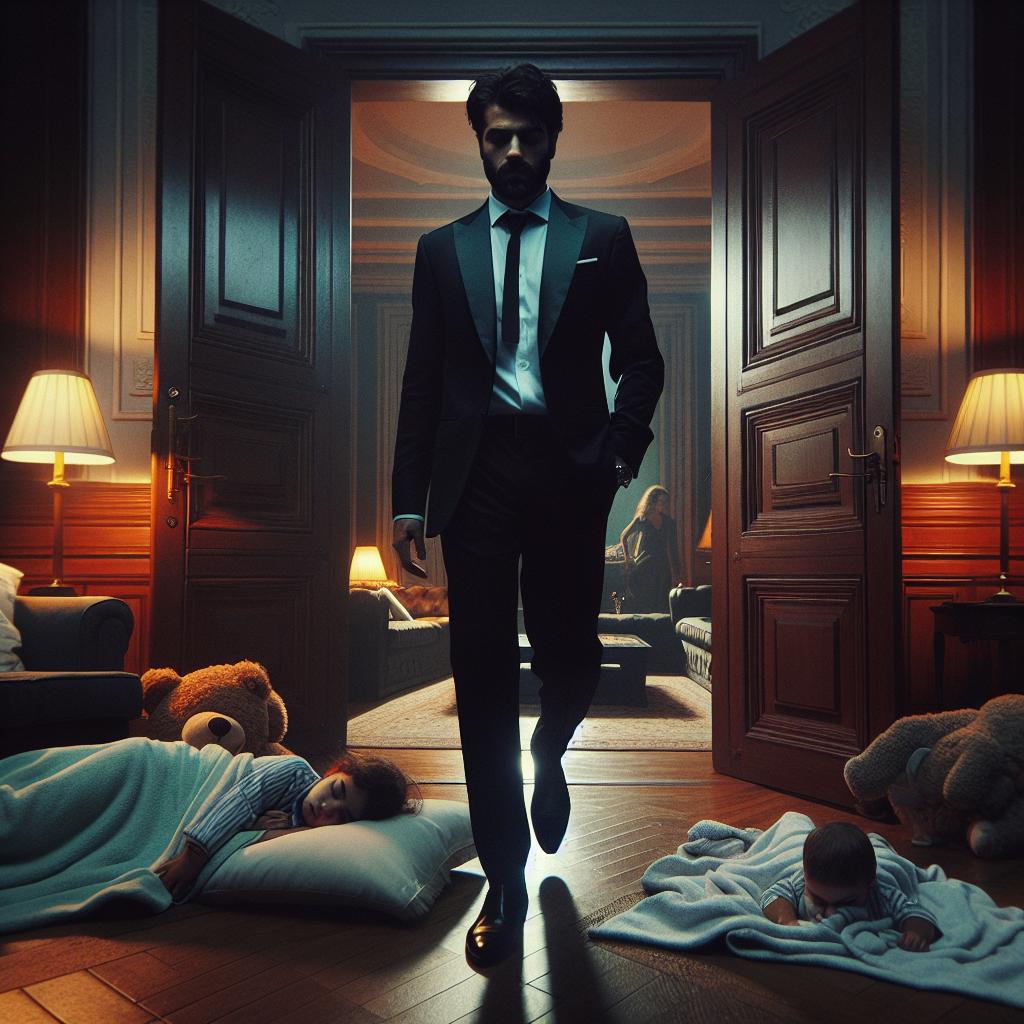 Стъпките му отекваха силно по мраморния под, докато разхлабваше вратовръзката си, все още усещайки тежестта на безкрайните срещи, преговори и постоянния натиск — да бъде онзи, когото всички възхищаваха и тайно му завиждаха.
