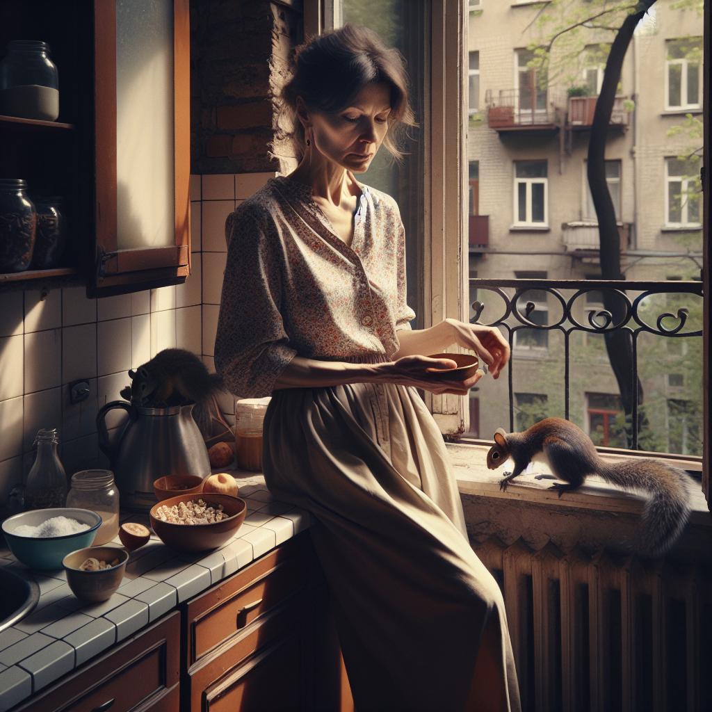 Пролетно неделно утро. В уютната малка кухня на двустаен апартамент в стара тухлена пететажна сграда закусва Десислава. Току-що е станала, нахранила е на балкона катеричката с бисквити и семки и е приготвила закуска. Точно под прозореца растат борове, по които катеричките се изкачват до петия етаж от близкия парк за лакомства, а понякога идват и гълъби.