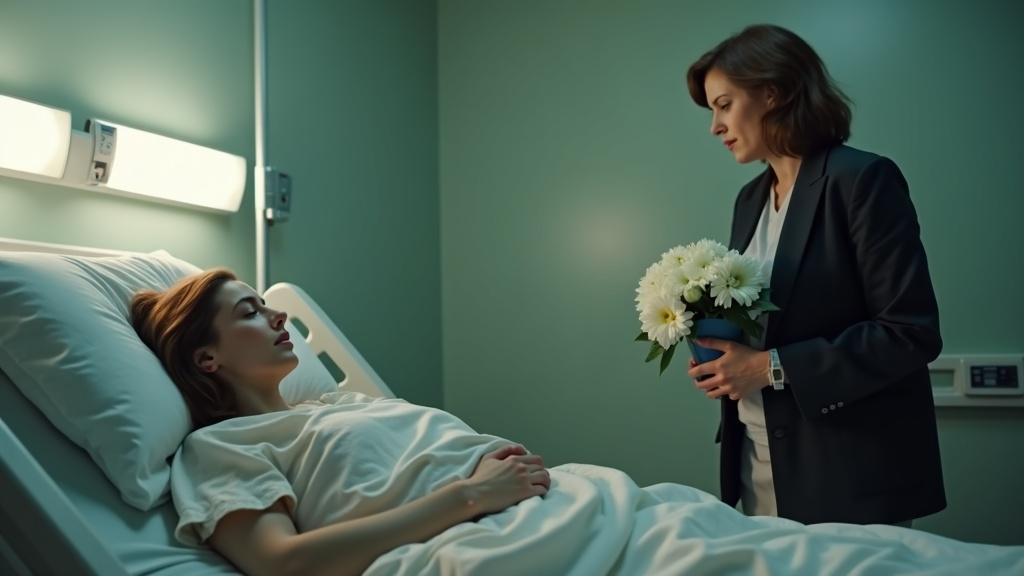 Венета с недоумение се запъти към входа на отделението. Зад стъклените врати стоеше стройна жена в тъмен костюм с букет бели хризантеми и подаръчна кутия със златиста панделка. Отначало Венета не разпозна жената, но после я позна и застина от изненада.
