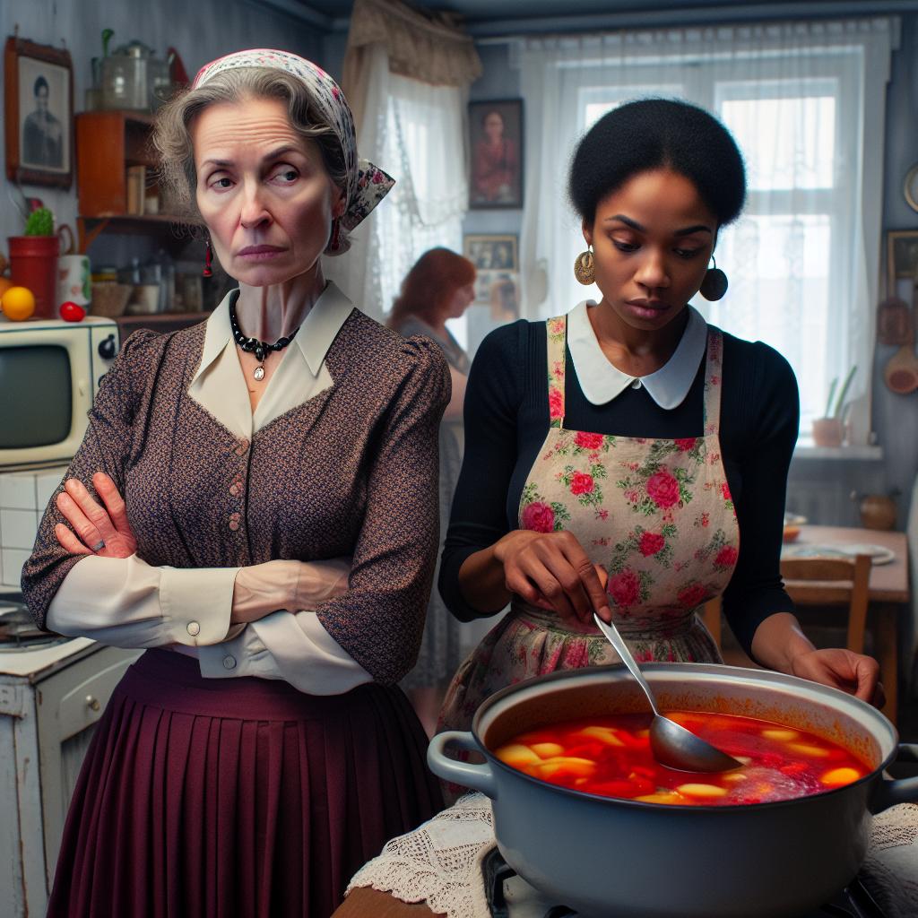 — Няма да ям този буламач! — заяви свекървата, за допълнителна убедителност размахвайки ръце, и отстъпи крачка назад от масата. — Непонятно какво изобщо има вътре! — Елена Владимировна направи жест, сякаш ѝ се доповръща, притисна ръка към устата и рязко се обърна с гръб към масата.