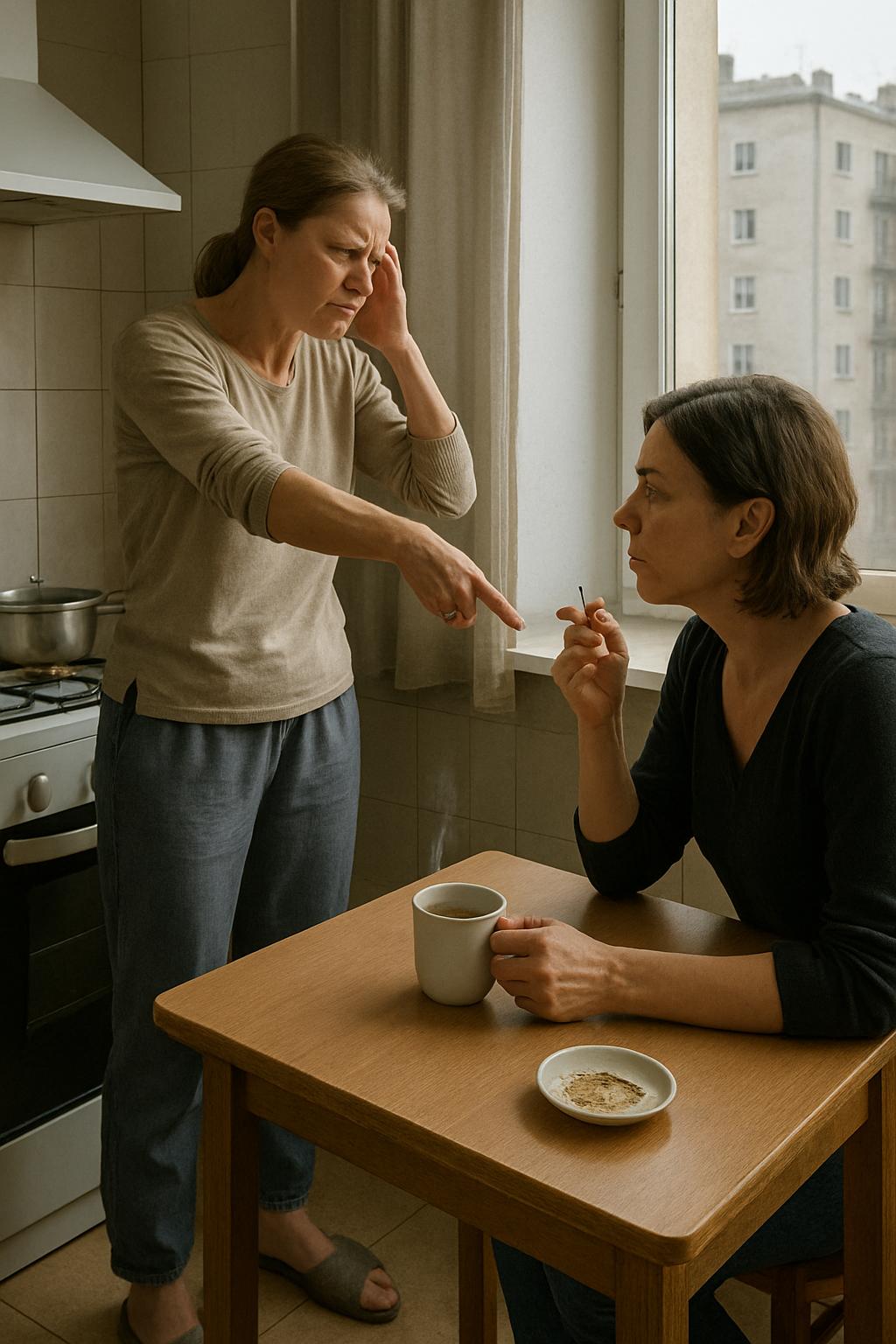 Мария седеше на табуретка в средата на кухнята, прегърнала чаша чай, вече леден. На котлона къкреше тенджера с елда, но тя напълно я беше забравила. По лицето ѝ се четеше смесица от обида, яд и онази умора, когато уж не плачеш, а очите предателски са мокри.