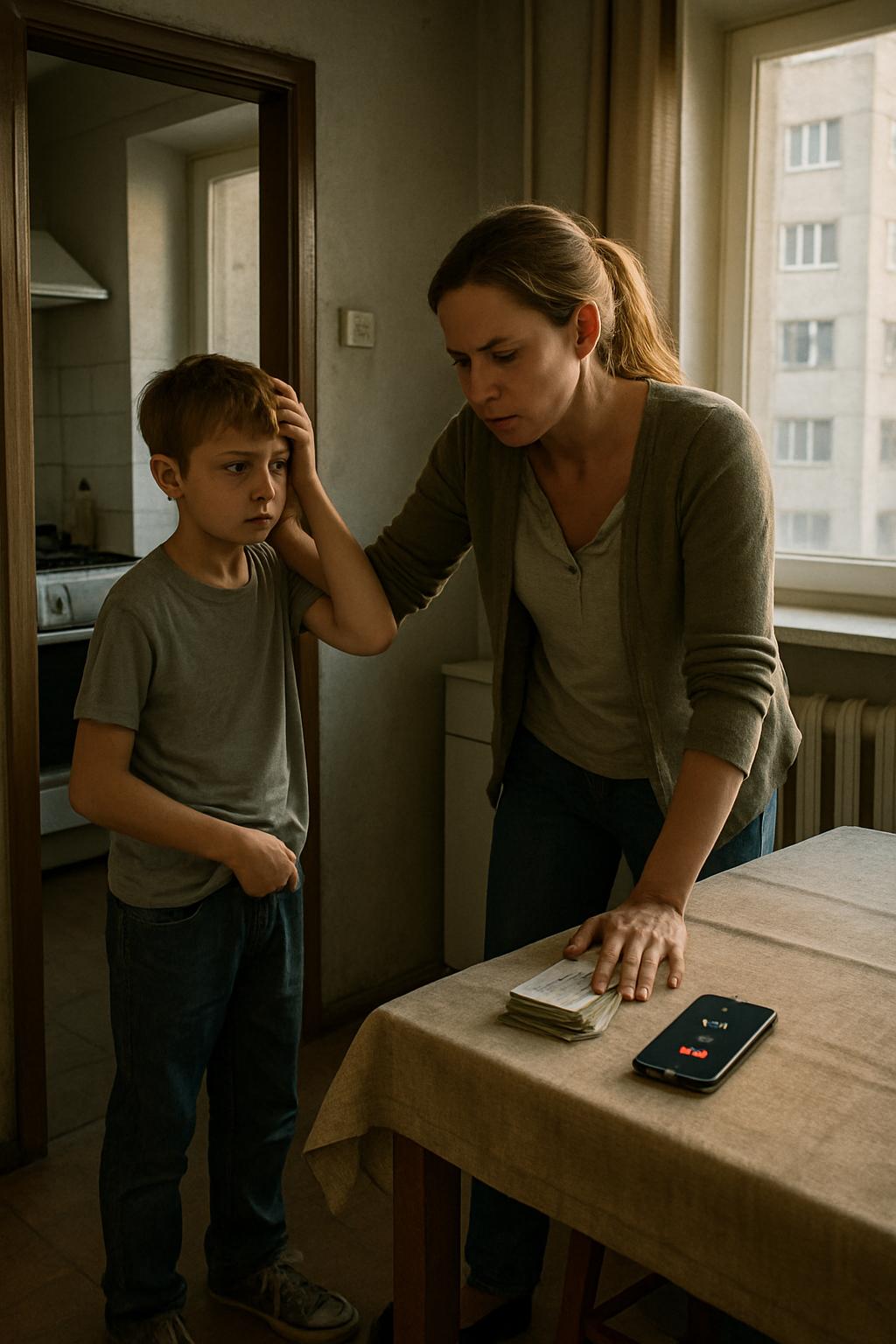 Връзката прекъсна със сухи сигнали. Хиляда и петстотин лева натам, хиляда и петстотин насам. Всяка седмица — ту за лекарства, ту за такси, ту за масаж. А колата стои вече трети месец неизправна. До училище пеша четиридесет минути. До детската градина — половин час в другата посока. После тичане към влака.