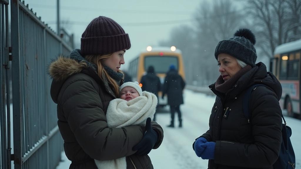 Автобусът стоеше с ревящ мотор, вратите вече хлопнаха веднъж. Хората се качваха вътре, хвърляха бегли погледи — съчувствие нямаше, само бързане.