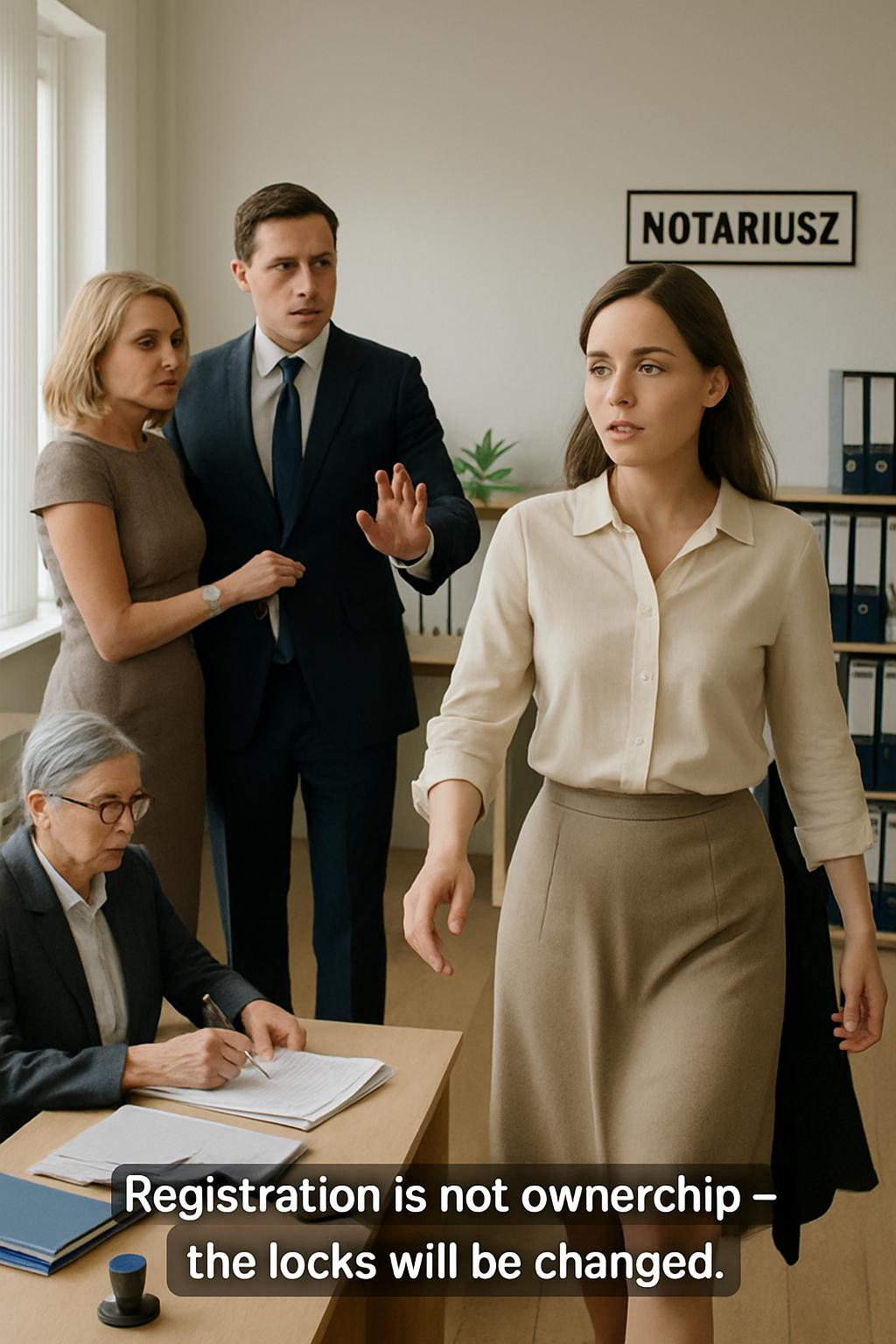 Възрастната нотариуска със строги очила професионално игнорираше всичко около себе си и методично прехвърляше документите.