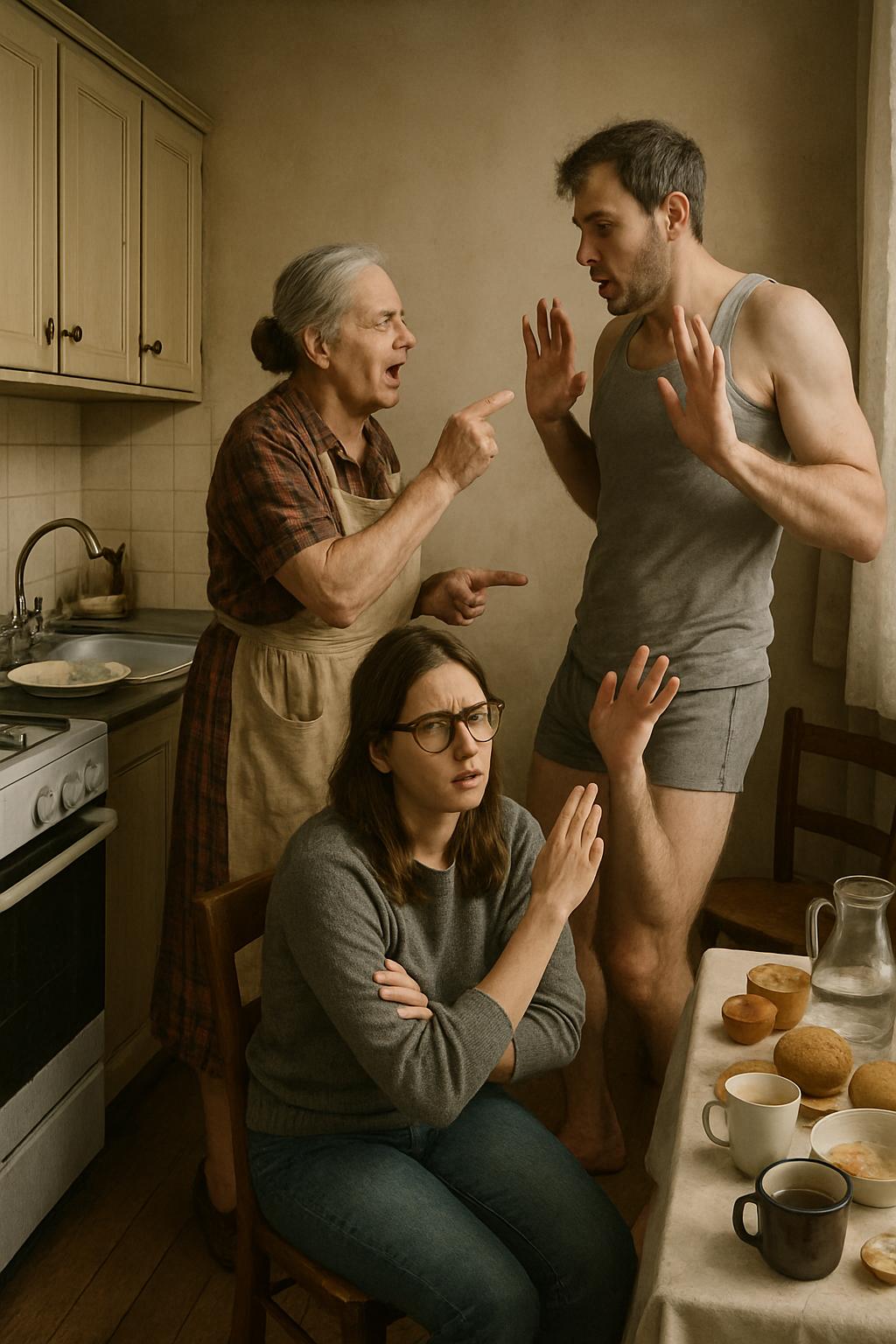 — Не успяла?! — избухна той; лицето му почервеня на петна.— Цял ден седиш вкъщи! Имаш само една задача – редът! А аз се прибирам в кочина! В мивката има съдове; нормална храна няма! Безделница такава! Никаква полза от теб – само разходи! Да натискаш копчета по пералнята не е като да носиш чували!