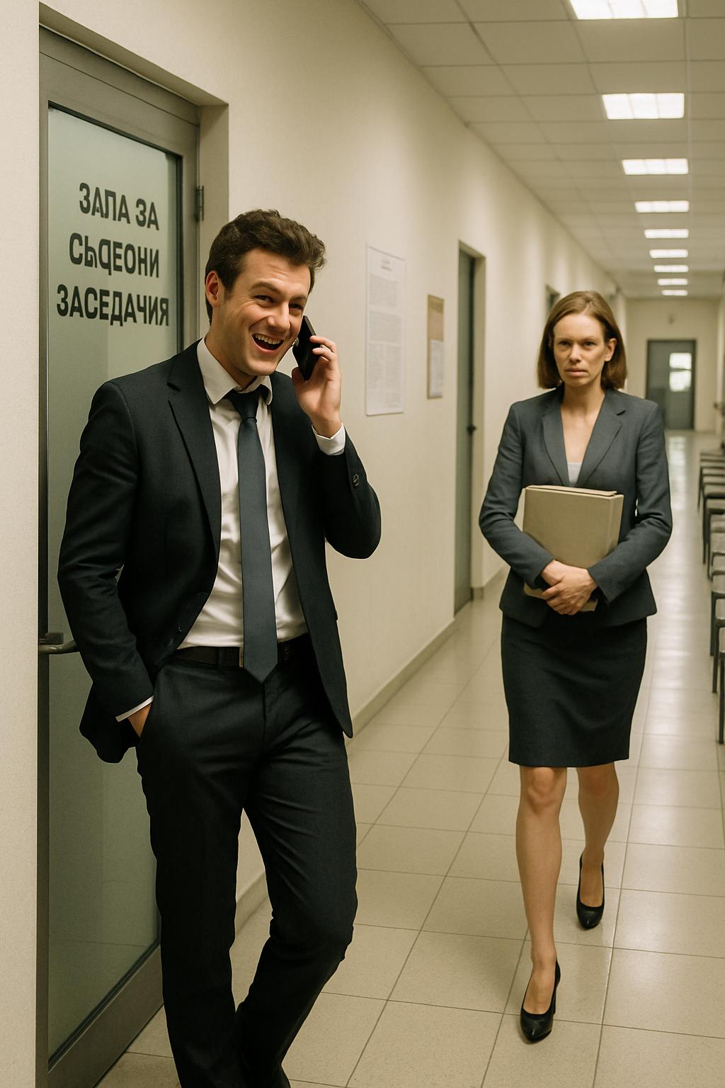 Иван говореше по телефона точно до входа на заседателната зала, без да си прави труда да говори по-тихо.