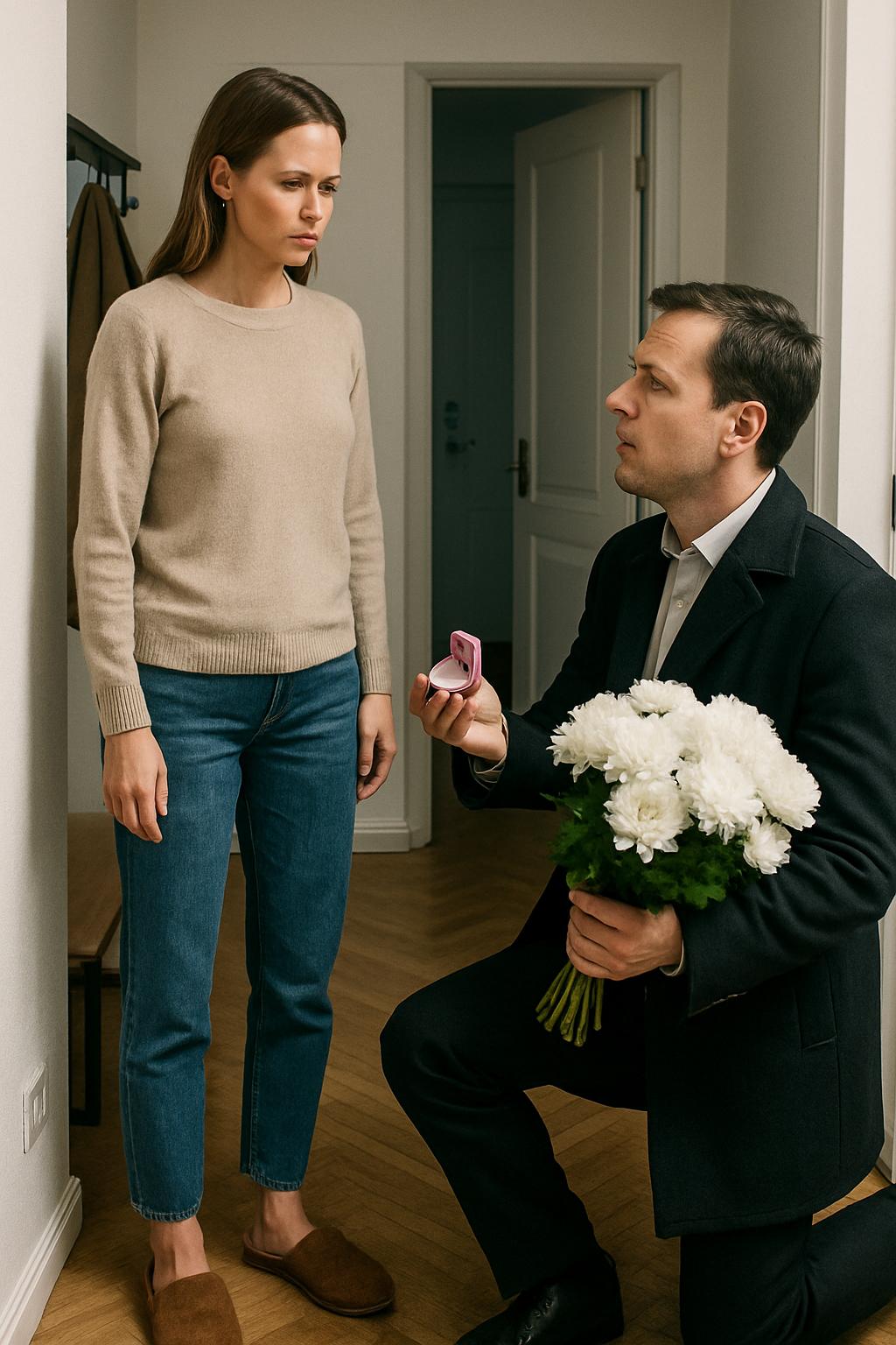 Илиян влезе, падна на едно коляно, извади от вътрешния джоб розова кутийка и я подаде на Ива: