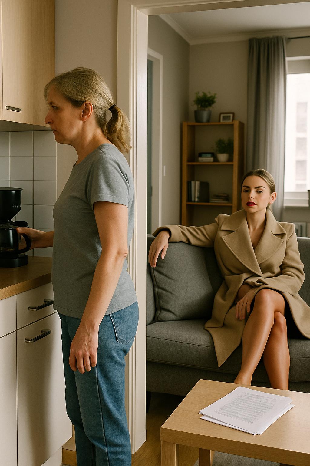 Тя се настани на дивана като у дома си — не предпазливо на ръба, а разпуснато, изтегнала се удобно и метнала едната си ръка върху облегалката, с вид на човек, който няма никакво намерение да бърза.
