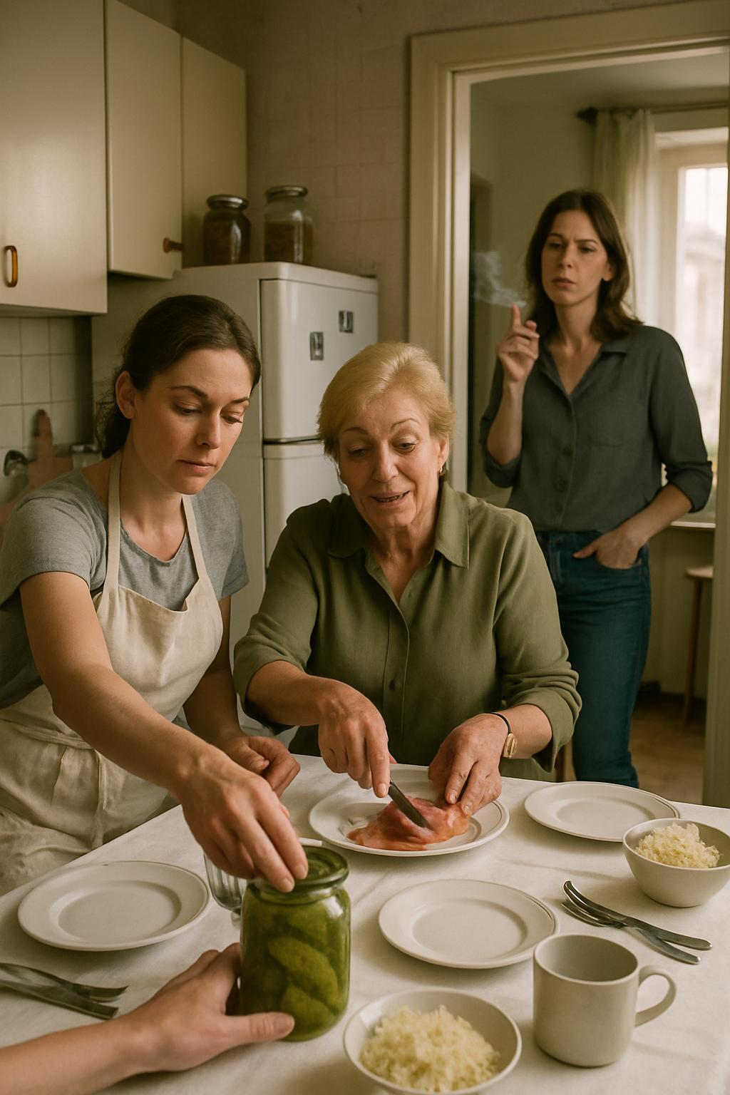 Онзи миг ме остави без думи. В „нашето семейство“ винаги се е ценял трудът. Преди малко бях изкарала дванадесетчасова смяна в сладкарския си цех, после обиколих пазара с чанти за цялата рода — всичко за юбилея на обичаната свекърва — и ето ме сега, заклещена в нейната кухня, без право дори на една краставичка.