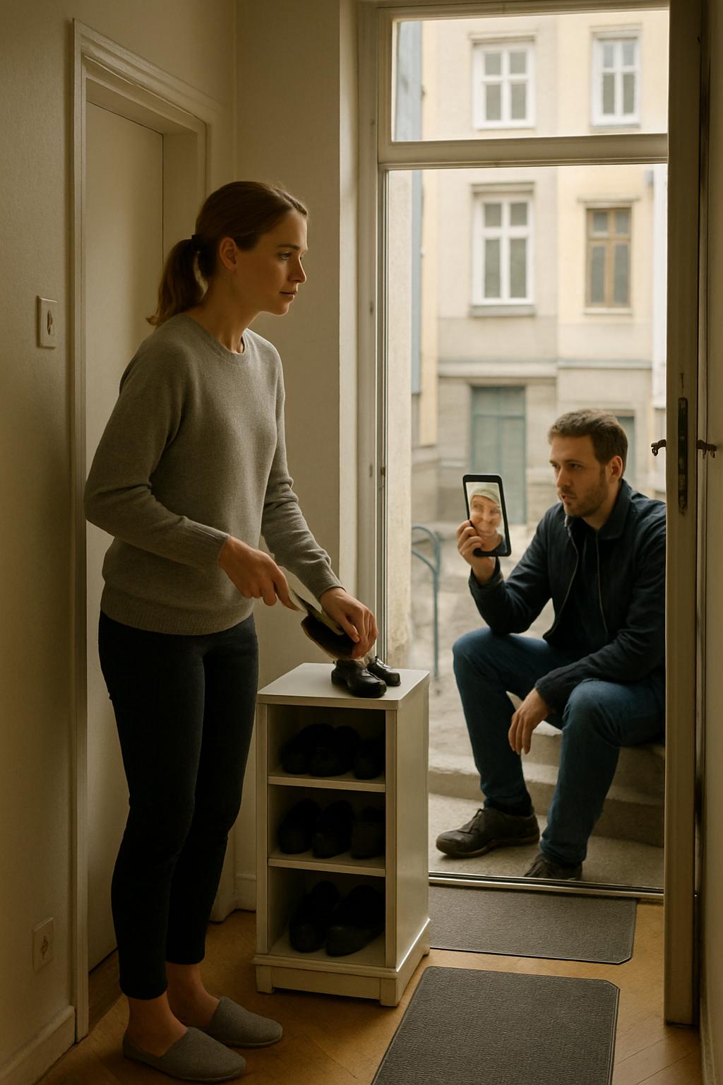 Докато подреждаше антрето, Мила Орлова долови гласа на свекърва си и по навик погледна през прозореца. Явор Данаилов беше седнал на стъпалата пред входа и говореше по видео с майка си. Мила се върна при шкафа за обувки, решена да не подслушва, ала Теодора Бургаска говореше толкова високо, че думите ѝ достигаха до ушите дори без усилие.
