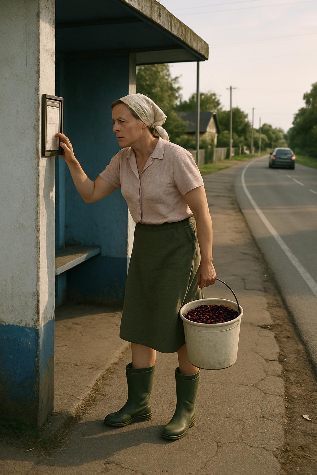 Какво ѝ оставаше да прави? Да тръгне пеша беше безумие – до града нямаше шанс да стигне преди тъмно, при това мъкнейки тежко ведро, пълно с горски плодове. Да се връща обратно към вилата означаваше нови два километра ходене, а това изобщо не влизаше в плановете ѝ. Оставаше единствено да спре някоя кола на пътя. Само че автомобилите бяха рядкост и всички профучаваха, без дори да намалят. „Защо ли изобщо се навих да дойда?“ – ядосваше се тя. Алчността си каза думата: щом е без пари, значи трябва да се вземе.