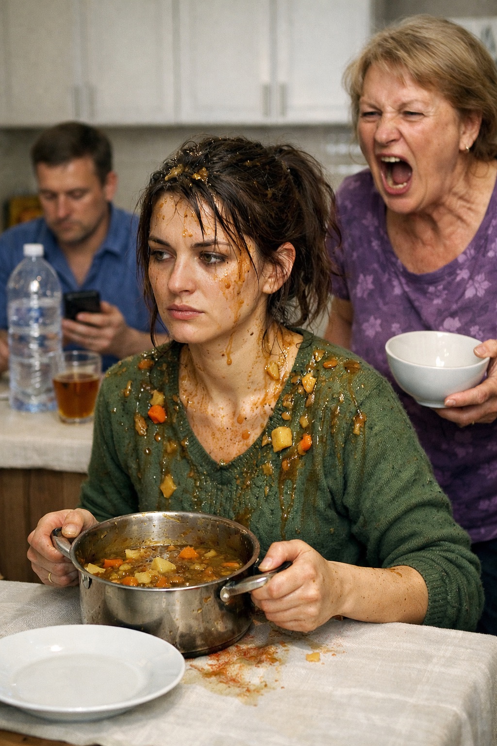 — „Става си“ ли? — тя рязко се изправи, пристъпи към тенджерата и надникна вътре. — Това наричаш нормално? Зорница, ти изобщо можеш ли да готвиш, или единственото, което умееш, е да харчиш парите на сина ми?