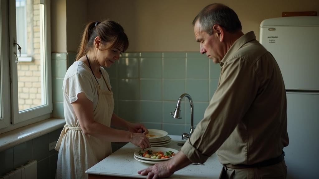 Полина Радева миеше чиниите в кухнята, когато Калин Воин влезе и без колебание изгаси лампата.