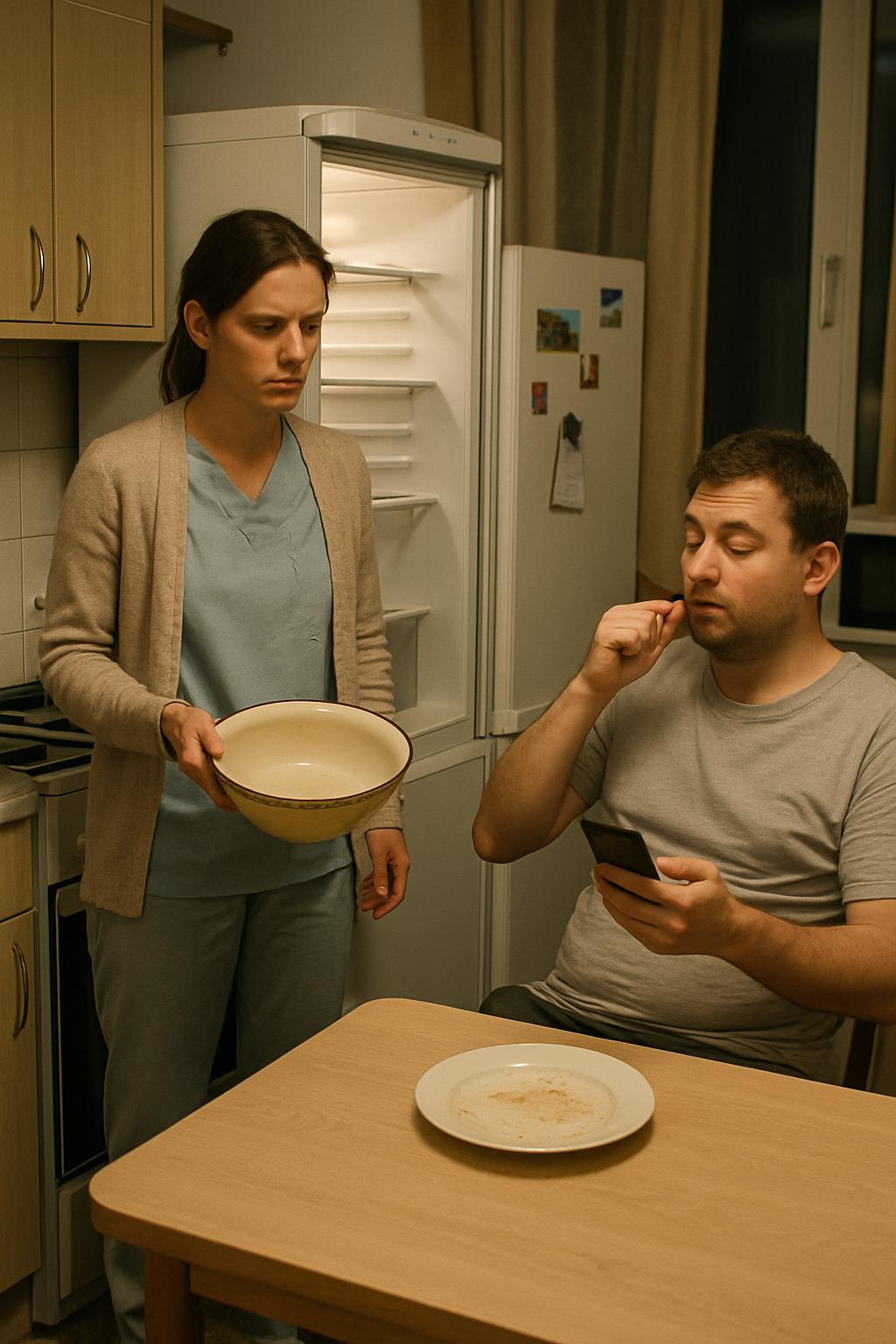 – Калин… Това беше за всички ни. Трябваше да стигне за три дни, – каза тя бавно, с усилие да запази равен тон. – В този апартамент живеем трима души. Ти сам ли унищожи всичките двайсет?