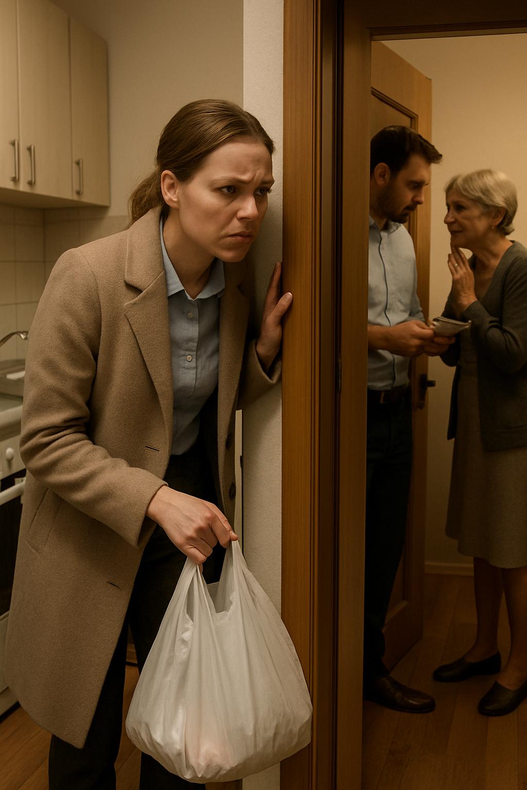 Лора остана неподвижна зад вратата. Пръстите ѝ се впиха в найлона, но тежестта на покупките сякаш изчезна. В ушите ѝ кънтяха откъслечни фрази: „750 хиляди…“, „премията отиде там…“, „Лора нищо не подозира…“, и всяка дума разтваряше в нея пропаст, която тепърва щеше да осъзнае докъде води.