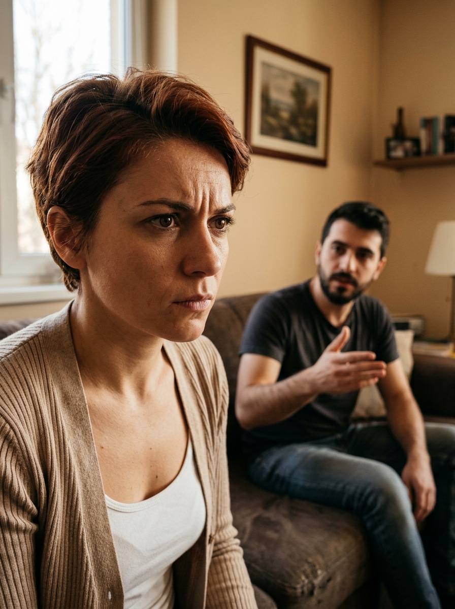 Щом прекрачи прага на апартамента, в носа ѝ се заби тежката миризма на цигари. Коридорът тънеше в мрак — крушката, която Васил обещаваше да смени вече повече от седмица, пак не светеше. Тя напипа ключа на лампата в хола и меката светлина разкри фигурата му: седеше на дивана с отпуснати рамене и празен поглед, сякаш дори не осъзнаваше, че от девет вечери насам между тях почти не се разменяше дума.
