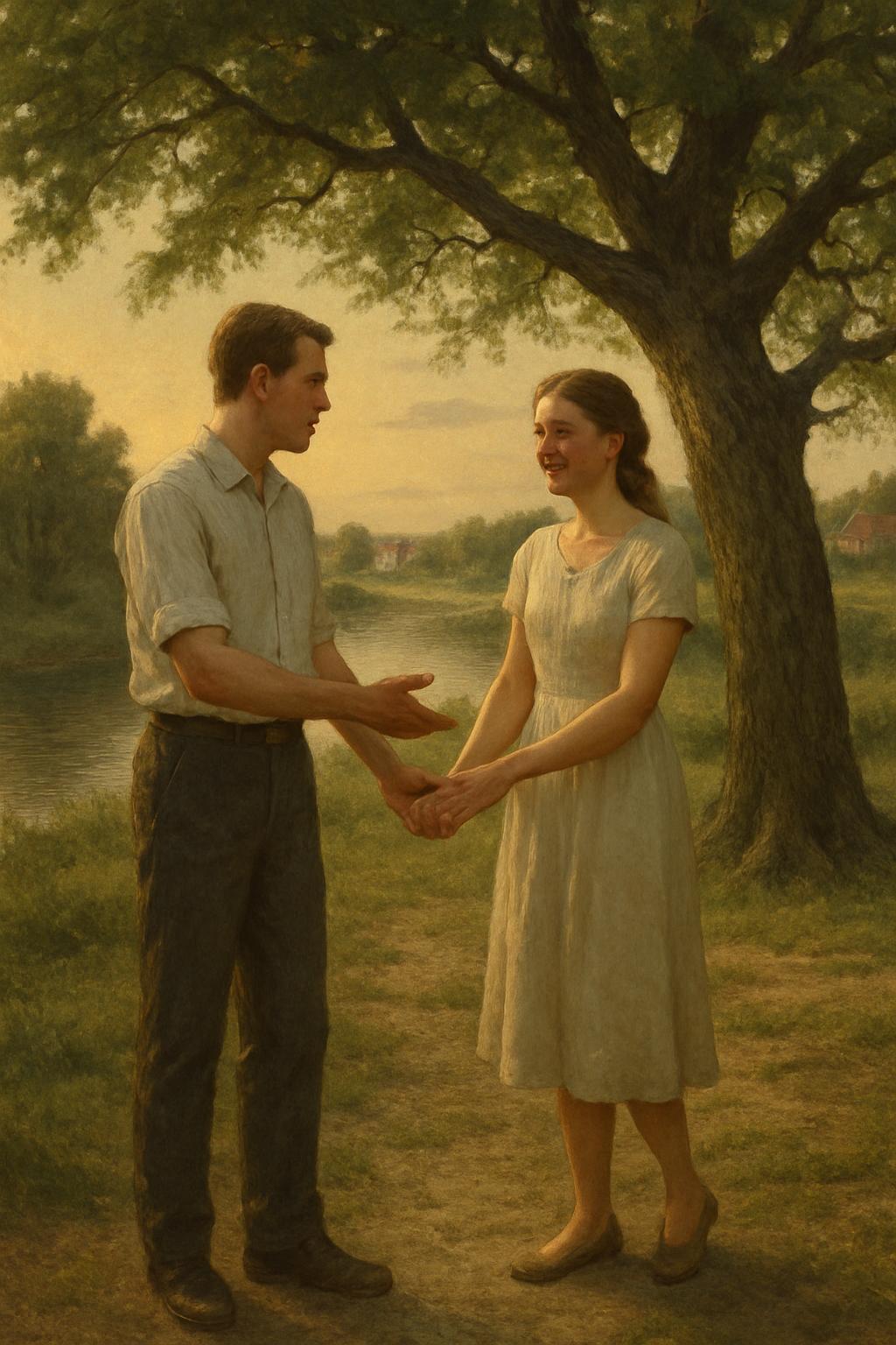 Една топла лятна вечер двамата се разхождаха край реката извън селото. Изведнъж Захари Каменар спря, хвана я за ръцете и с необичайна сериозност прошепна:
