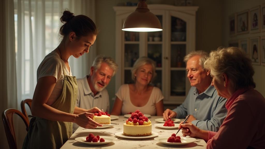 Бързам да разрежа сладкиша, украсявам всяко парче с пресни малини. Всяко движение е премерено до милиметър — страх ме е да не сбъркам. В съзнанието ми отекват думите му от последната семейна вечеря: „Пак си несръчна. Един обикновен сладкиш не можеш да нарежеш както трябва.“