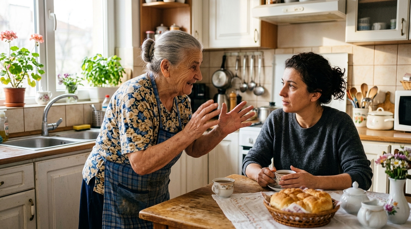 Плискането на водата заглушаваше мислите ѝ, отмиваше напрежението и ѝ създаваше усещане, че разполага поне с мъничко лично пространство. В кухнята се носеше аромат на запечено пиле, смесен със свежия дъх на препарата за съдове. На масата седеше свекърва ѝ – Таня Орлова – и лениво въртеше лъжичката в чашата си. Металът почукваше по тънкия порцелан равномерно и настойчиво, сякаш отброяваше секундите.