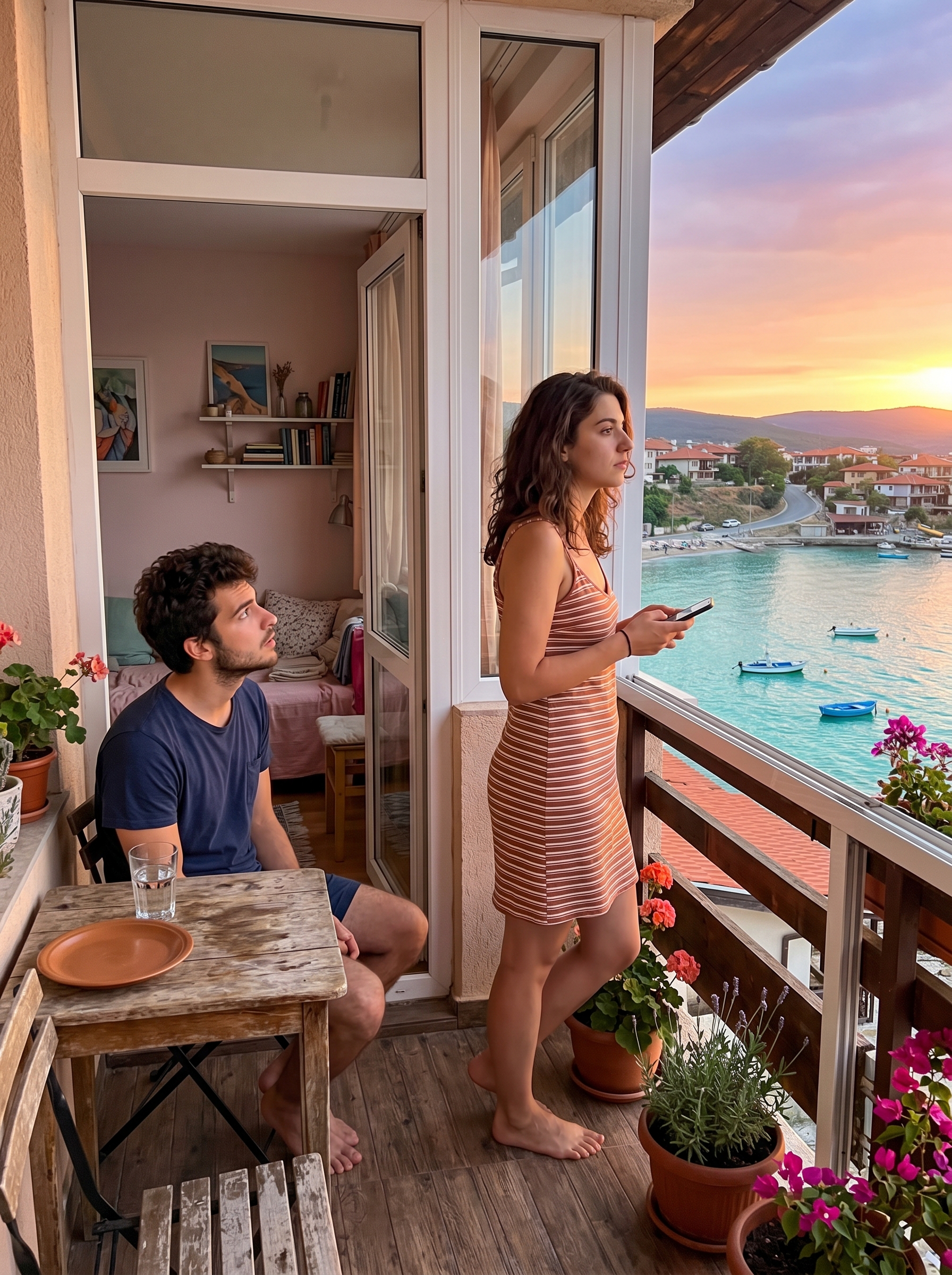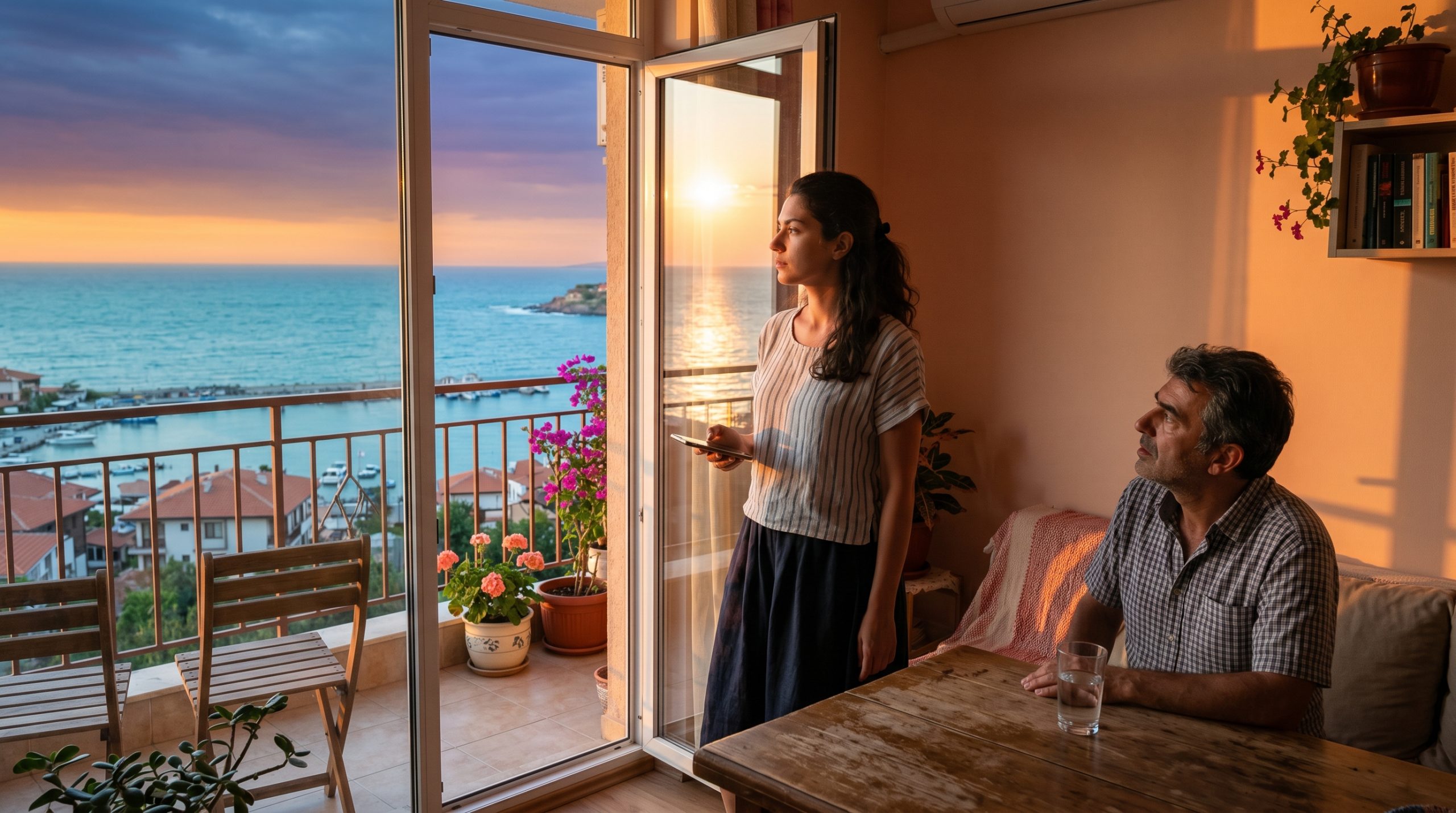 Мария бавно свали телефона и остана за миг неподвижна, вперила поглед през прозореца. Отвън морето проблясваше — наситено синьо-зелено, нагорещено от юлското слънце. Апартамента бяха наели още през март заедно с Георги Любомиров — двустаен, с просторна веранда и изглед към залива. Събираха пари половин година, за да си го позволят. Бяха тръгнали насам като на истински празник — първата им свястна почивка от три години насам.