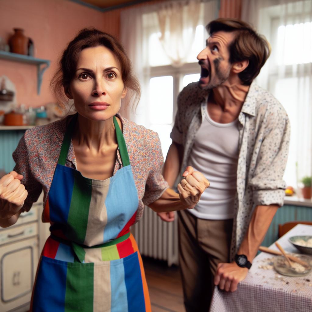 И така, вместо да поднесе печена пилешка вечеря, поднесе варени макарони с наденички. Леката конфронтация завърши с хвърлена в стената чиния.