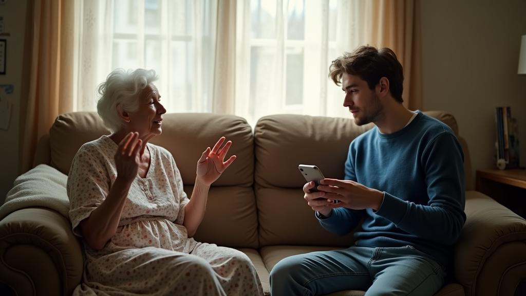 — Пих, пих. Не се притеснявай, скоро ще се оправя — отговори жената с напрегната усмивка, а внукът веднага долови, че нещо не е наред.