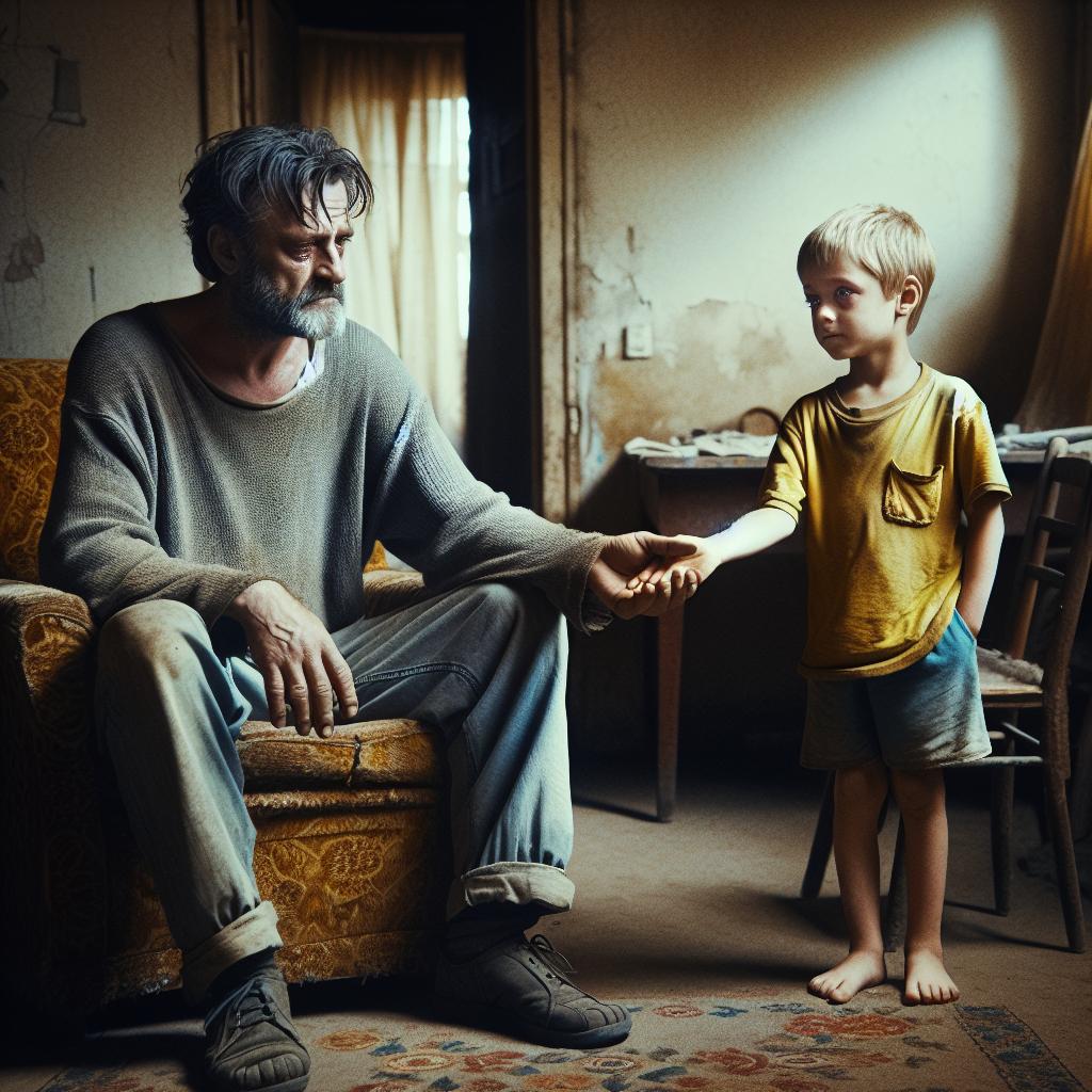 Мъжът вдигна глава, очите му бяха зачервени от плач. Първоначално не разбираше какво говори момчето, но после забеляза, че и неговите очи са мокри от сълзи. С тежка въздишка мъжът отвърна: