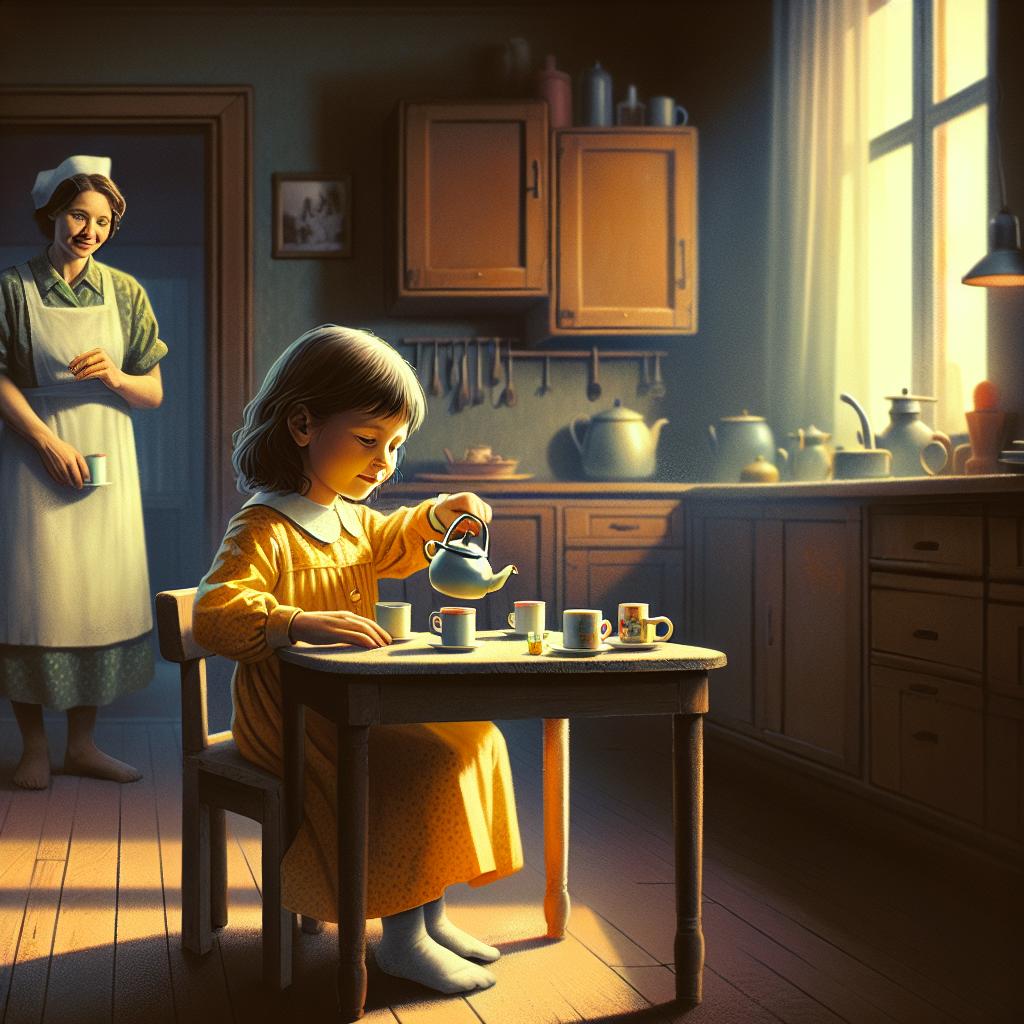 Един ден, когато майка ѝ влезе в стаята, момиченцето седеше на масата и разговаряше с някого, докато разливаше въображаем чай от играчка чайник в малки чашки.