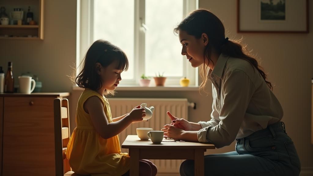 Един ден, когато майка ѝ влезе в стаята, момиченцето седеше на масата и разговаряше с някого, докато разливаше въображаем чай от играчка чайник в малки чашки.